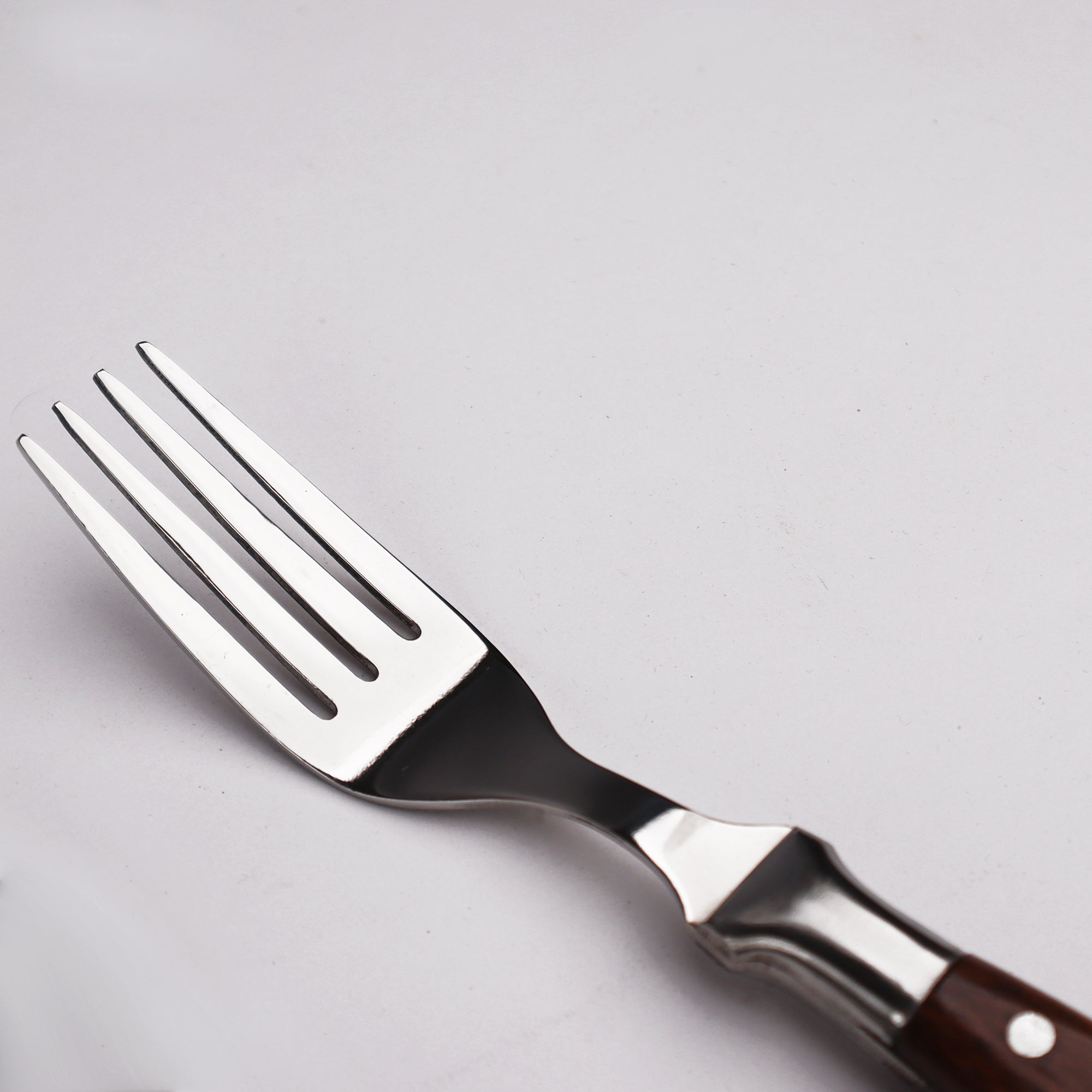 Expertly crafted from 304 stainless steel, this Chef steak fork, spoon, and knife set offers durability and contemporary style to any dining experience. The ergonomic design of the Wooden handles provides a comfortable grip while the polished steel blades ensure effortless cutting and serving.