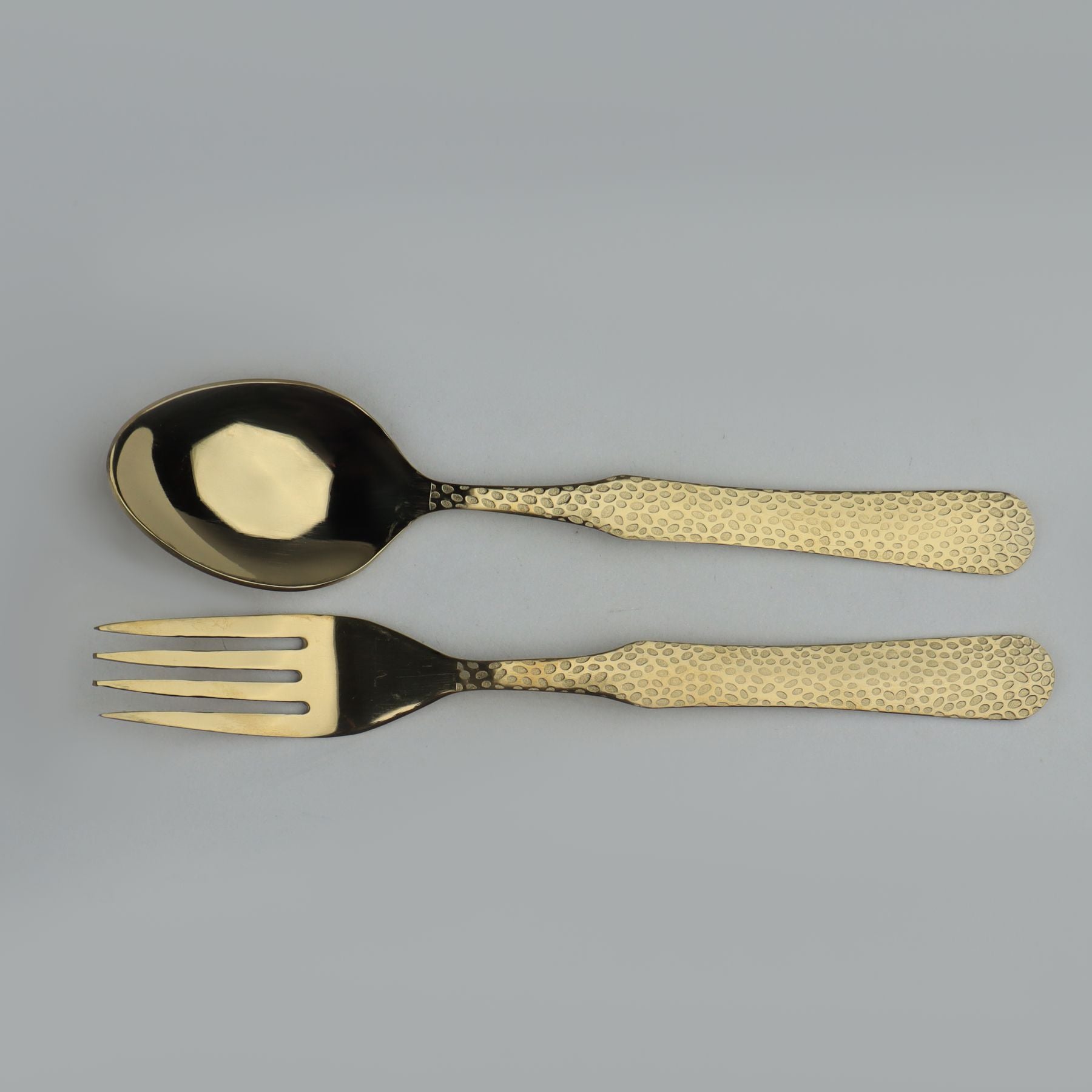 The Stainless Steel PVD Coated Cutlery Set with Stand from izna's collection features a unique hammer-shaped design, combining style with functionality. Crafted from high-quality stainless steel with a durable PVD coating, this set offers enhanced corrosion resistance and long-lasting shine. The included stand keeps your cutlery organized and easily accessible, perfect for both everyday use and special occasions. Its ergonomic design ensures comfortable handling, making dining a refined experience. Ideal for those who appreciate durability paired with modern aesthetics.