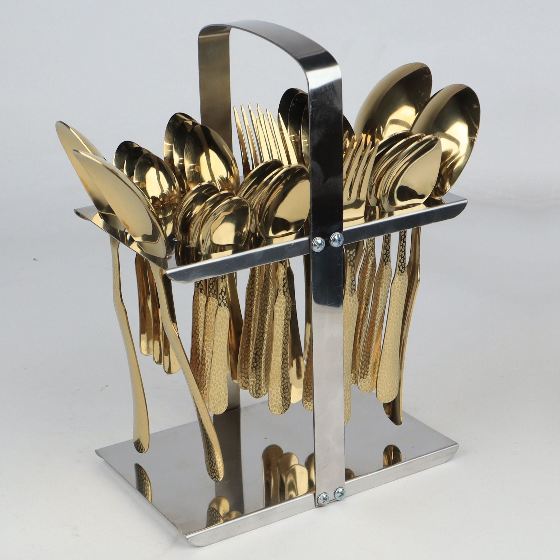 Stainless Steel PVD Coated Cutlery Set With Stand - Hammar Shape
